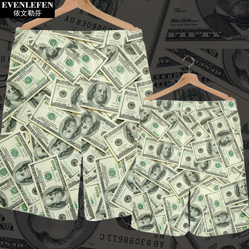 各国货币金钱美元美金纸币个性创意速干短裤子男士五分裤休闲中裤