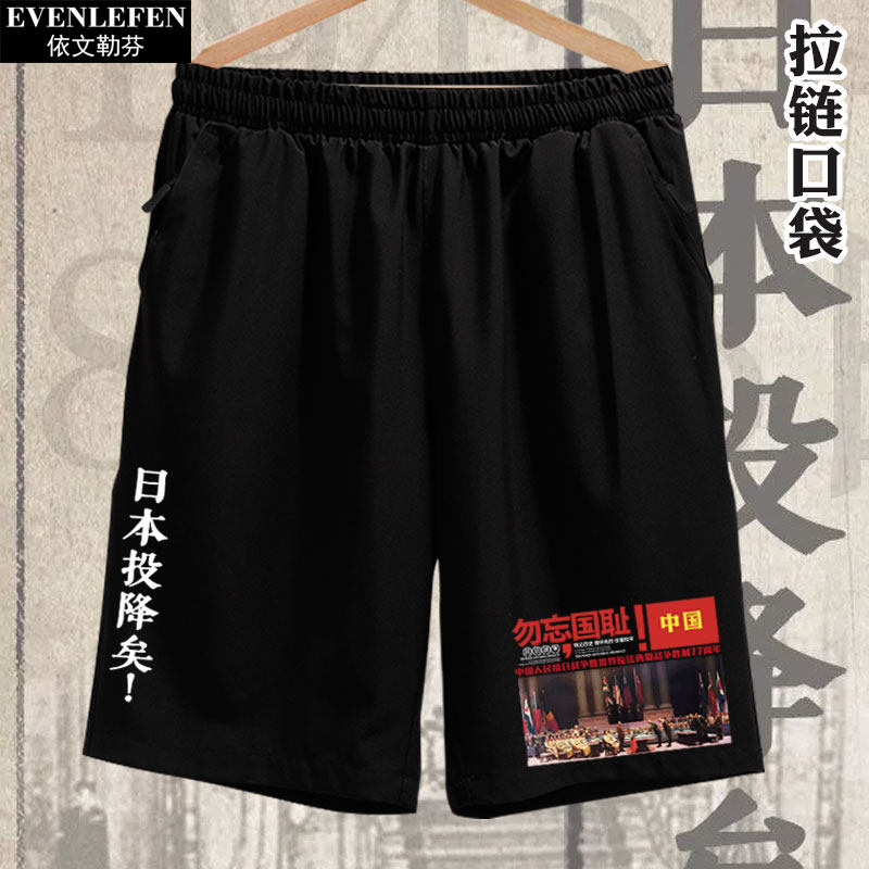 日本宣布无条件投降纪念抗日胜利77周年爱国速干短裤子男士五分裤