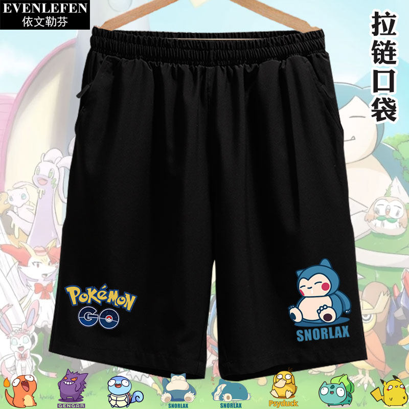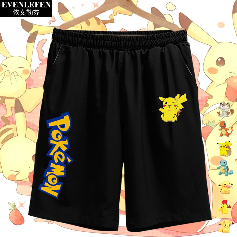 口袋妖怪皮卡丘杰尼龟小火龙青少年速干短裤子男5五分裤学生中裤