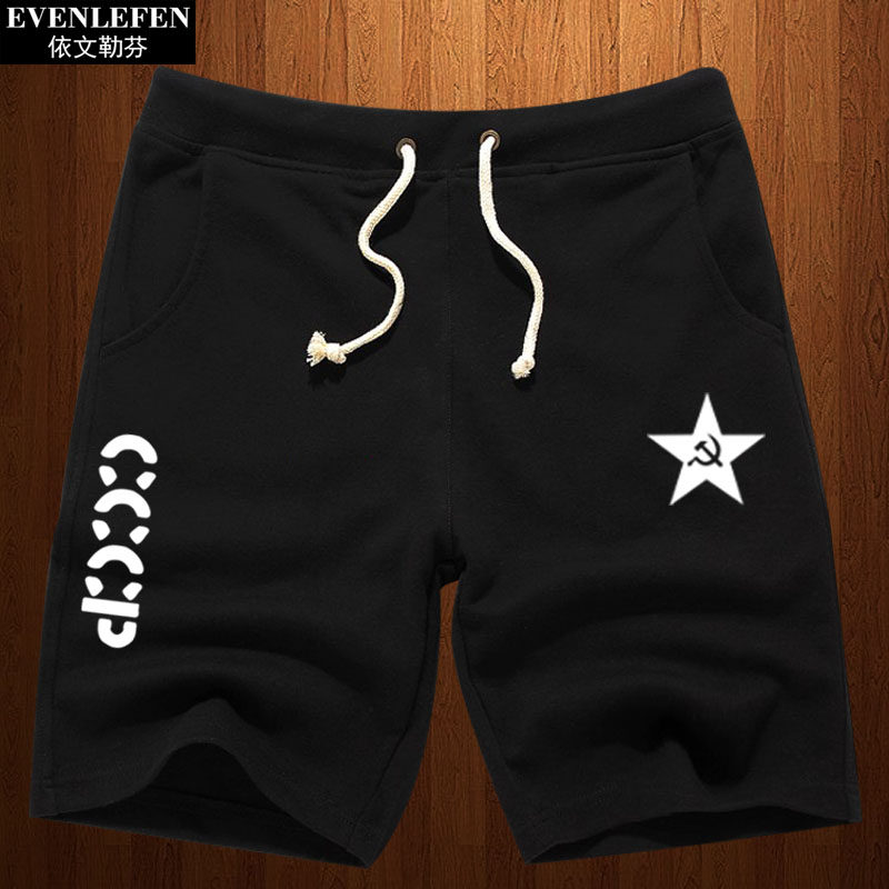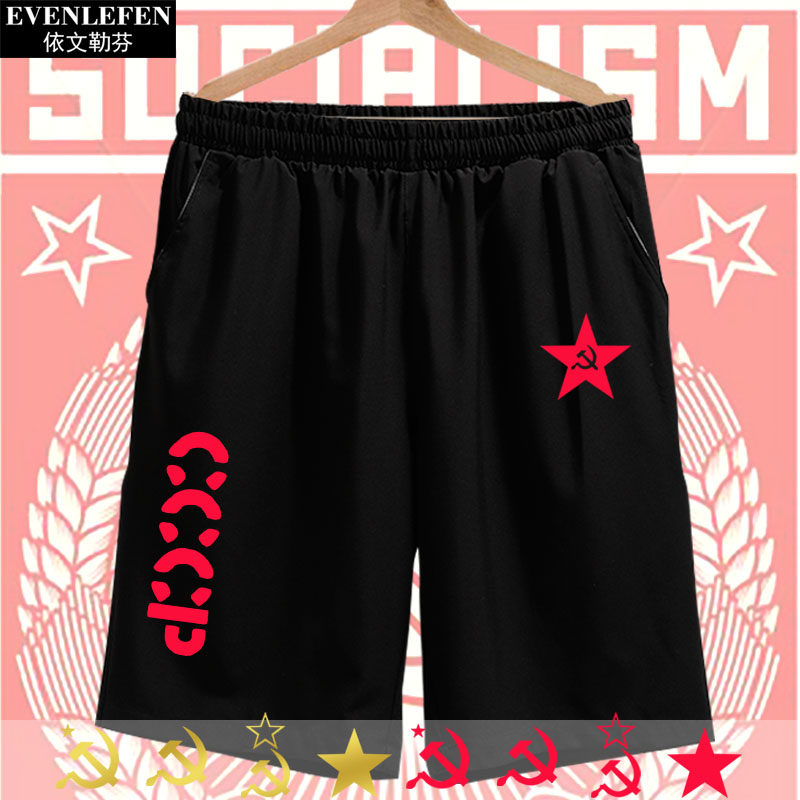 苏联国旗短裤男士CCCP苏维埃卫裤夏季五分裤裤子5分运动休闲卫裤