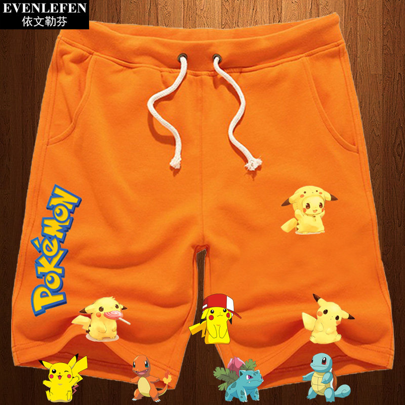 口袋妖怪青少年短裤皮卡丘杰尼龟小火龙五分裤子男士学生夏休闲裤