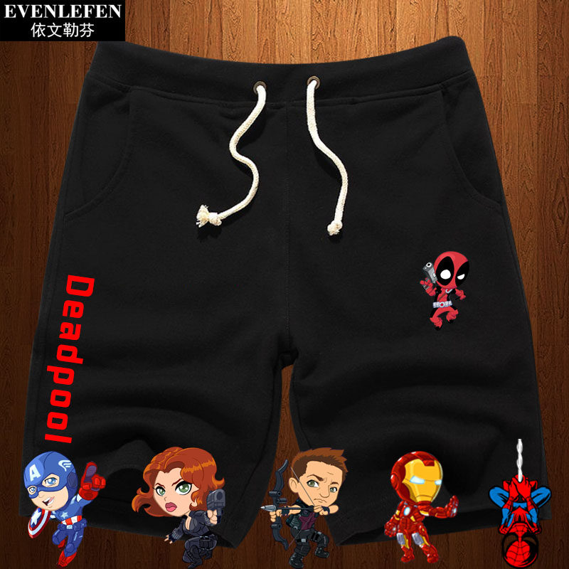 美国队长钢铁侠黑寡妇短裤五分裤子男女漫威英雄休闲裤5分短卫裤