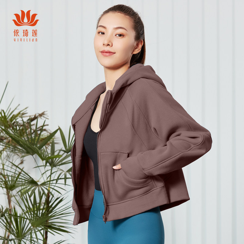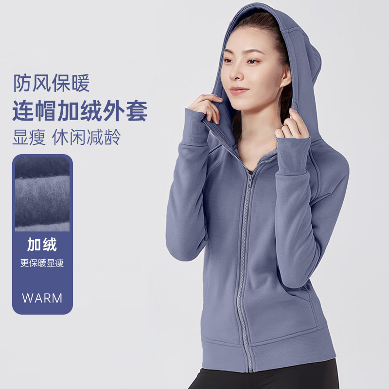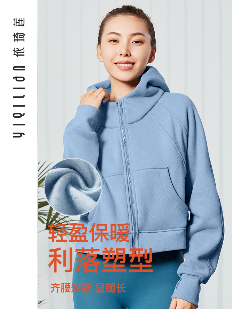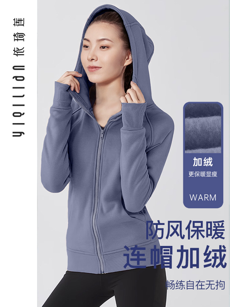 依琦莲瑜伽服外套女运动骑行长袖面膜衣跑步拉链衫连帽加绒上衣