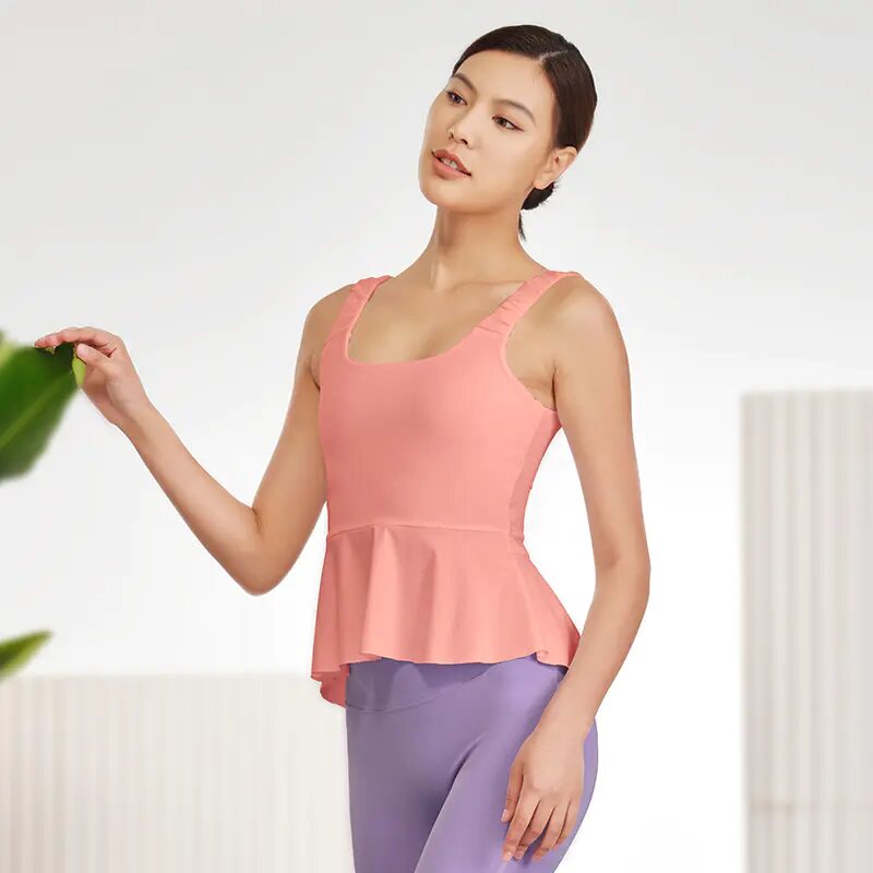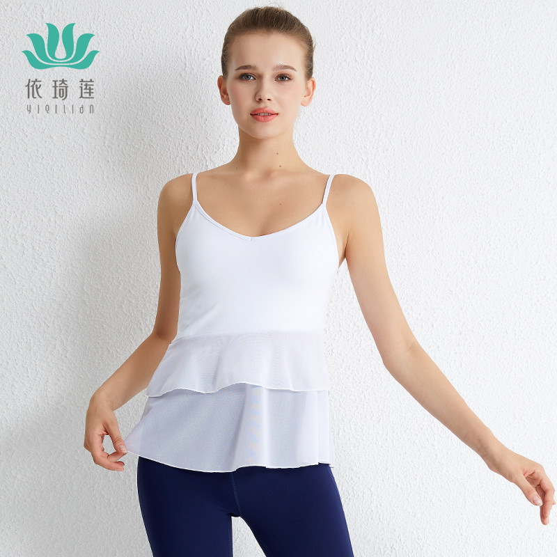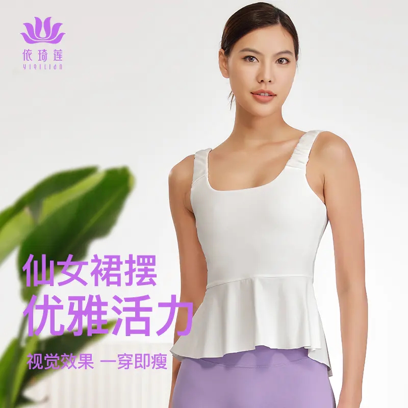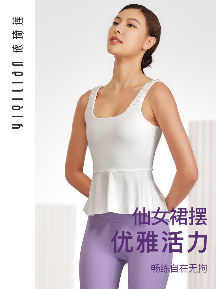 依琦莲瑜伽背心肩带褶皱荷叶边运动女无袖瑜伽健身衣普拉提训练服