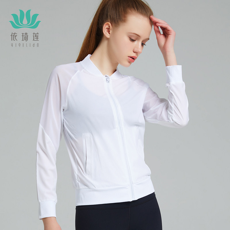 依琦莲瑜伽服外套显瘦运动服健身服网纱立领晨跑上衣拉链衫跑步服