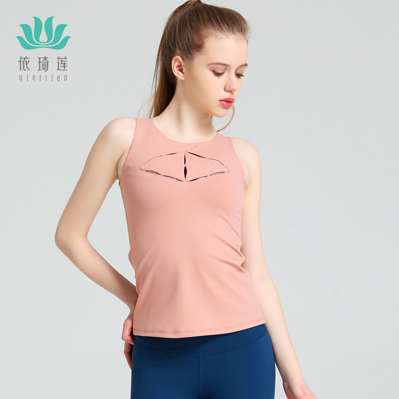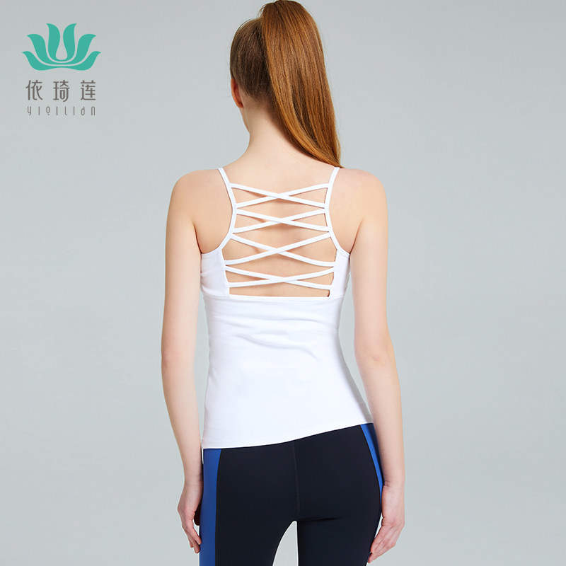依琦莲瑜伽服上衣健身服跑步运动吊带背心带胸垫显瘦X型V领女士