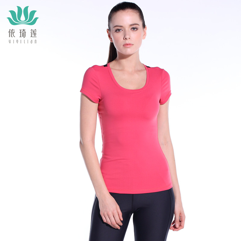 依琦莲运动T恤夏季新款显瘦透气瑜伽服修身专业跑步短袖健身上衣