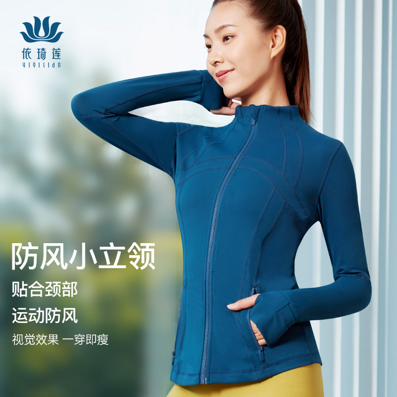 依琦莲瑜伽外套女可外穿晨跑健身服拉链衫长袖运动立领跑步衣上衣
