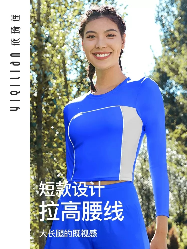 依琦莲瑜伽长袖2023春夏新款时尚撞色拼接设计显瘦遮肉专业运动服