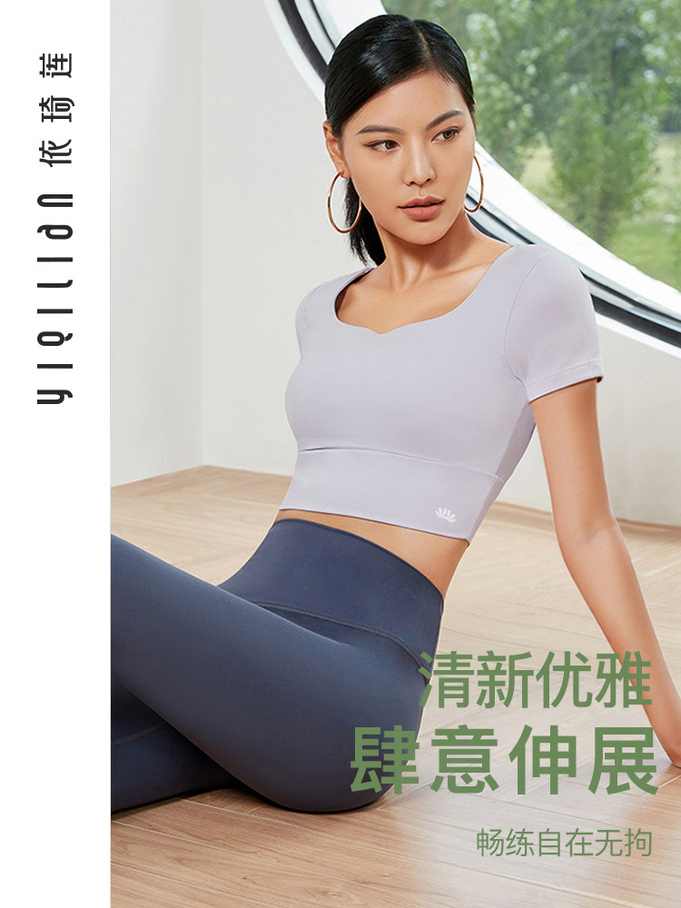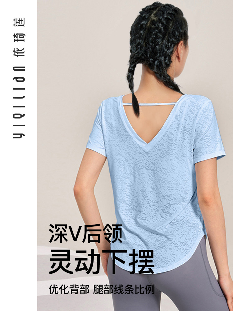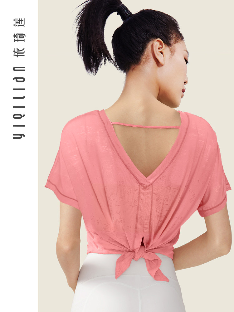 依琦莲运动上衣瑜伽服罩衫薄款健身服短袖透气普拉提训练服外搭