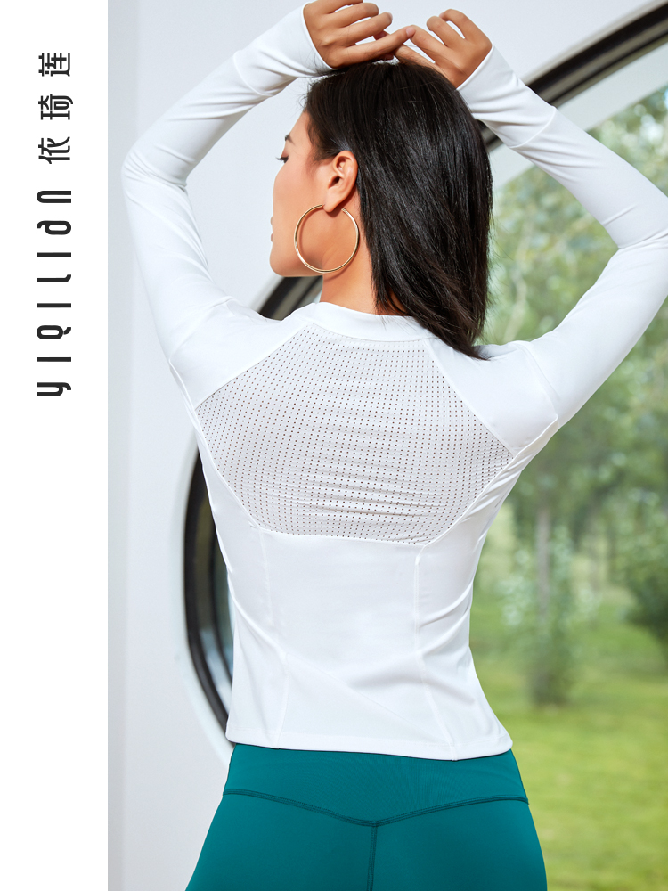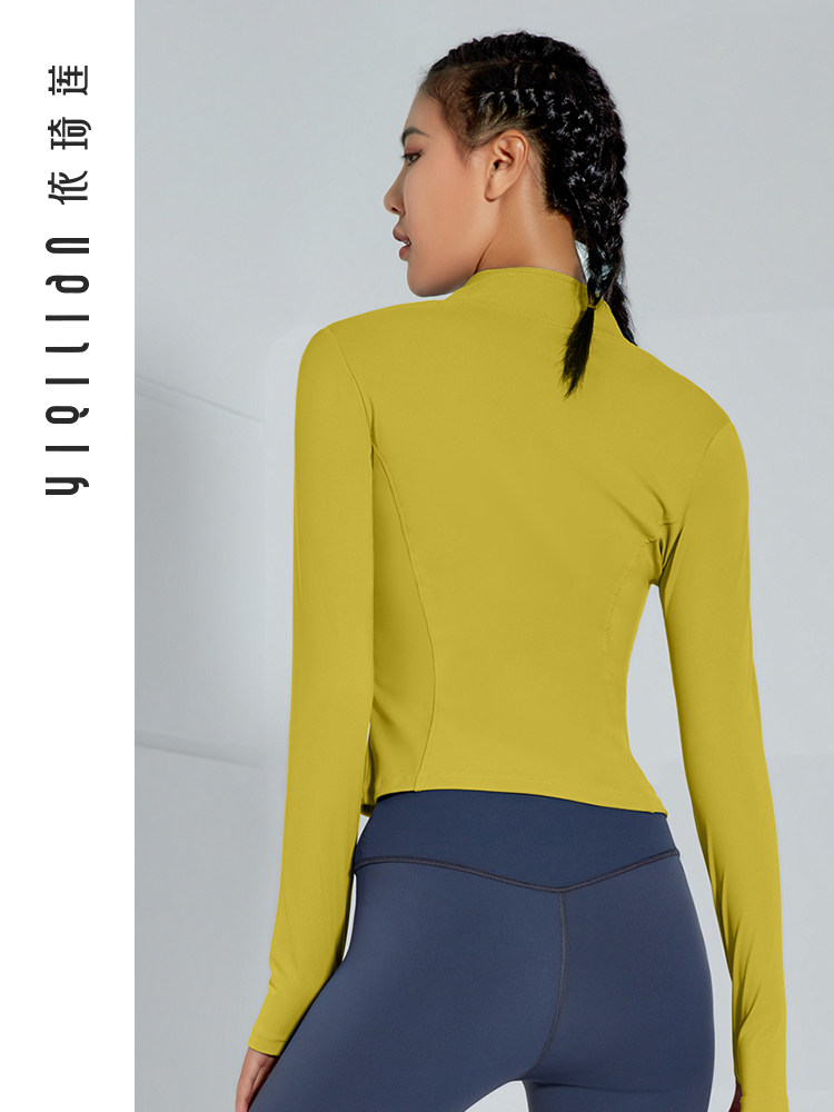 依琦莲瑜伽服新款半拉链立领健身服长袖运动跑步上衣训练服外穿