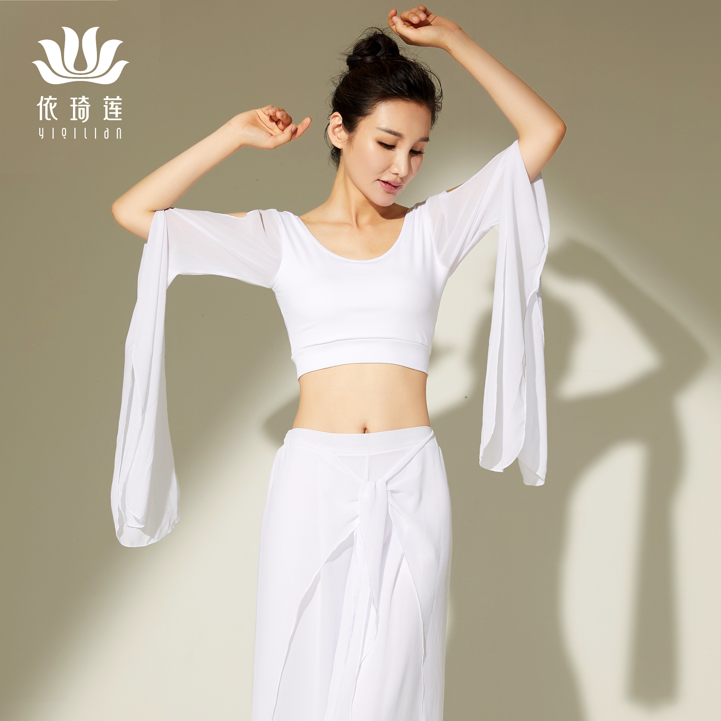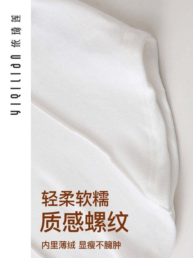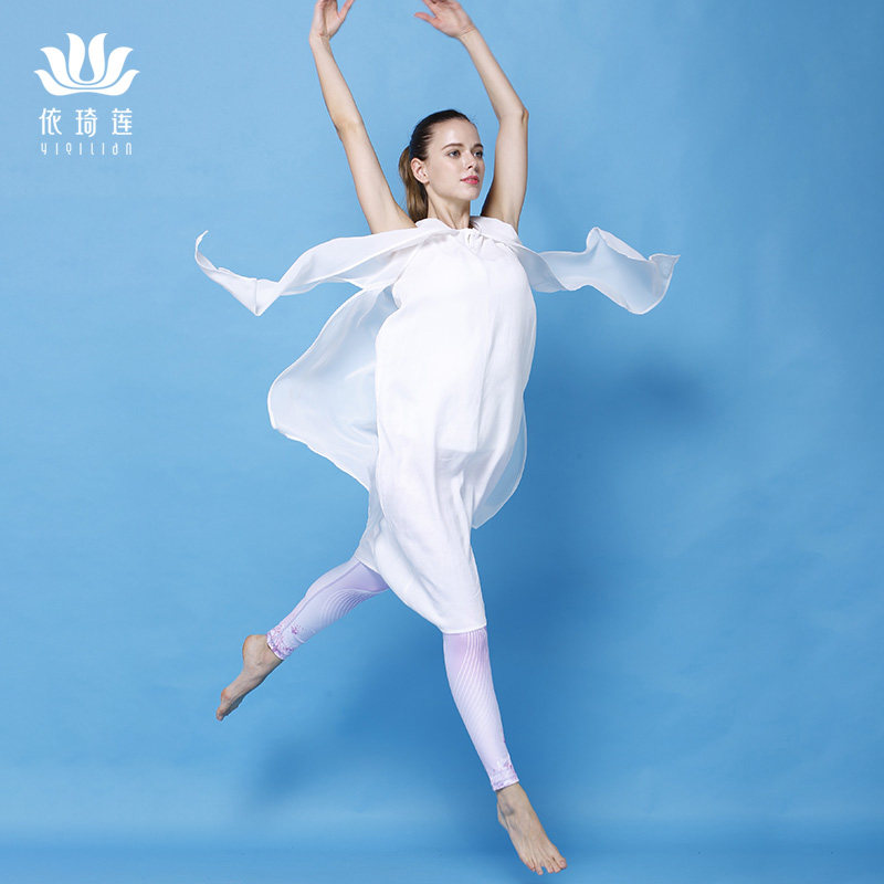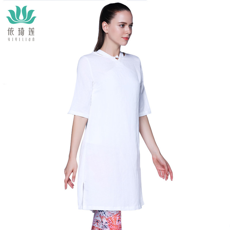 依琦莲秋冬白色瑜伽服亚麻上衣五分袖长款大师服女装优雅宽松舒适