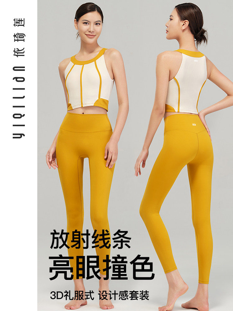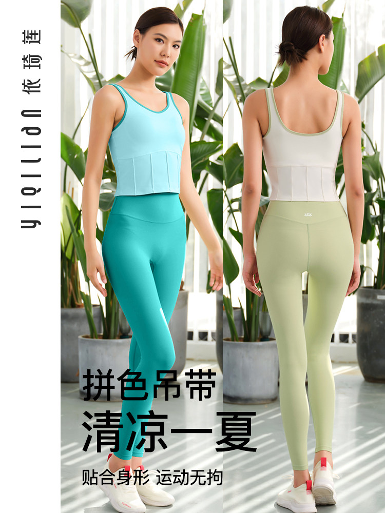 依琦莲新款瑜伽服套装撞色裸感瑜伽背心瑜伽裤健身服运动跑步服