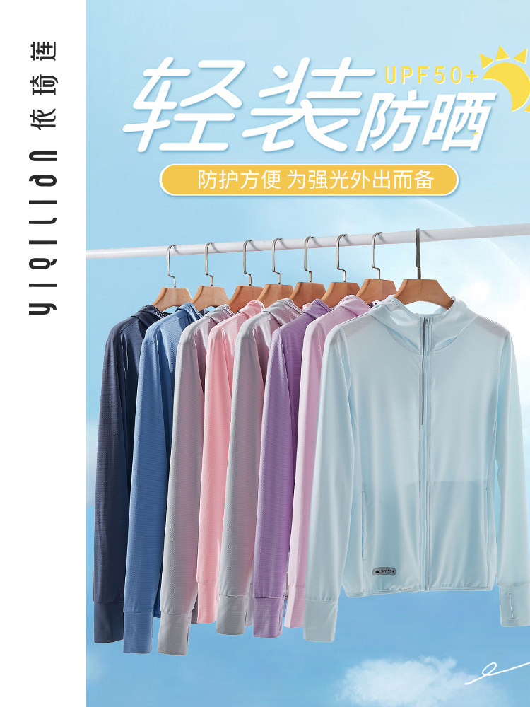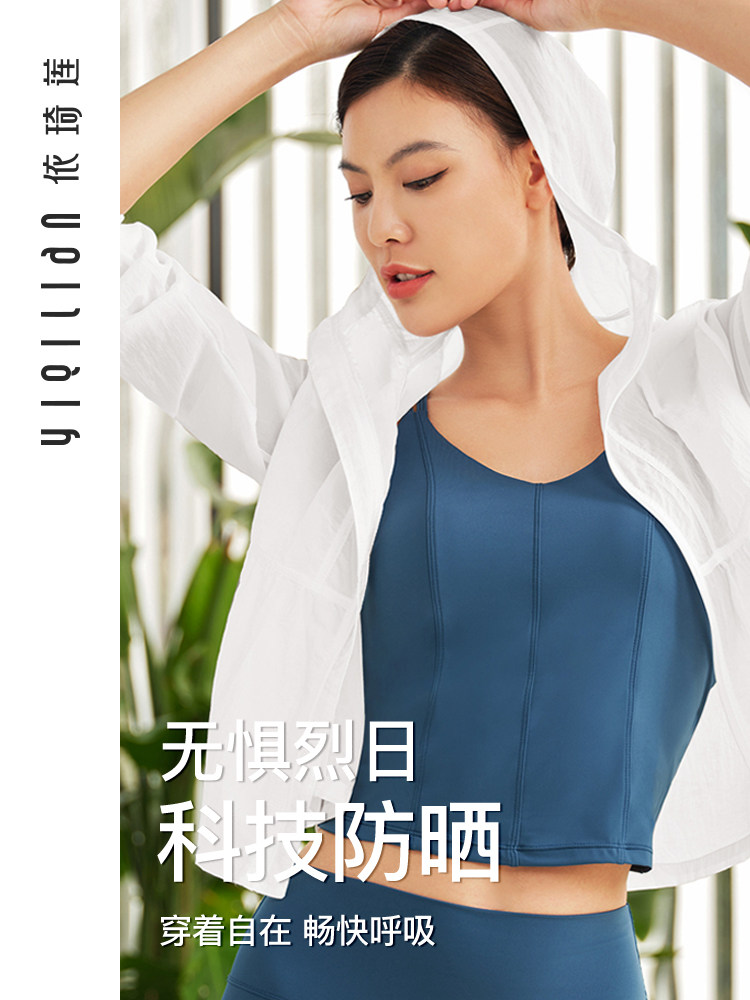 依琦莲春夏时尚瑜伽服运动外套女防晒衣短款宽松连帽轻薄透气蓬松
