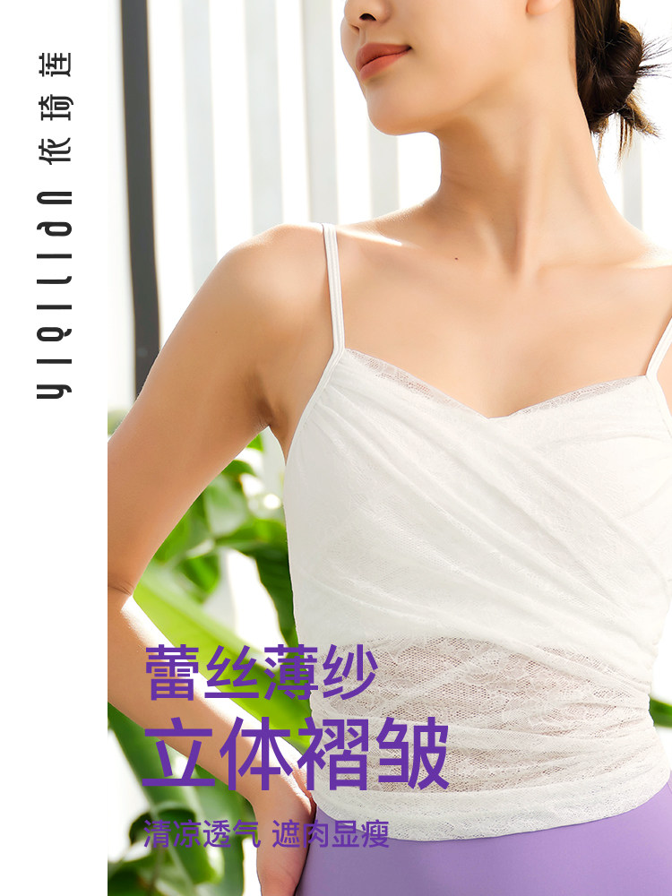 依琦莲夏季瑜伽服吊带背心蕾丝网纱运动健身服修身公主风性感上衣