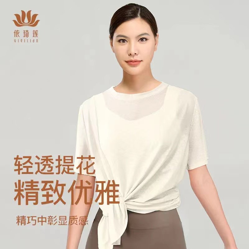 依琦莲盈薄提花运动上衣女宽松健身服跑步瑜伽服普拉提罩衫衣服