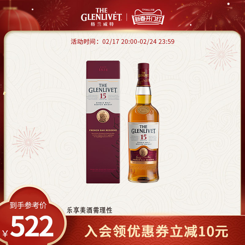 the glenlivet格兰威特15年橡木桶单一麦芽威士忌700ml洋酒礼盒