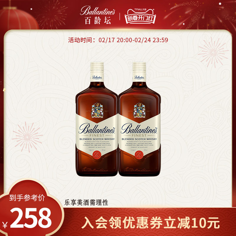 百龄坛特醇调和威士忌1000ml*2苏格兰进口洋酒烈酒调酒基酒可乐桶