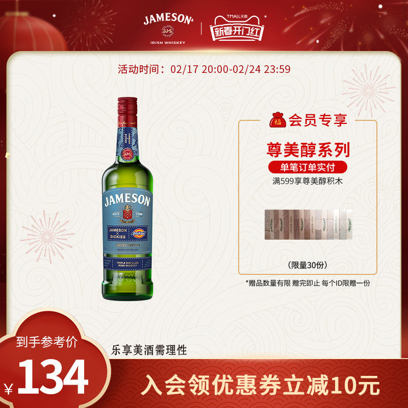 Jameson尊美醇爱尔兰威士忌700ml进口洋酒烈酒基酒调酒官方旗舰店