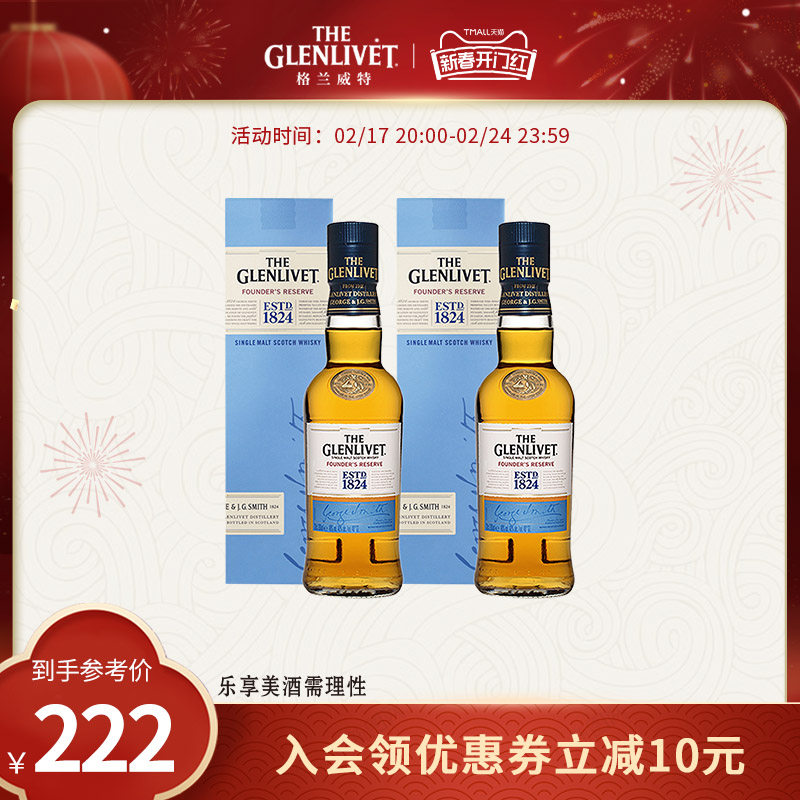 格兰威特创始人甄选单一麦芽威士忌200ml*2小瓶洋酒礼盒组合套装