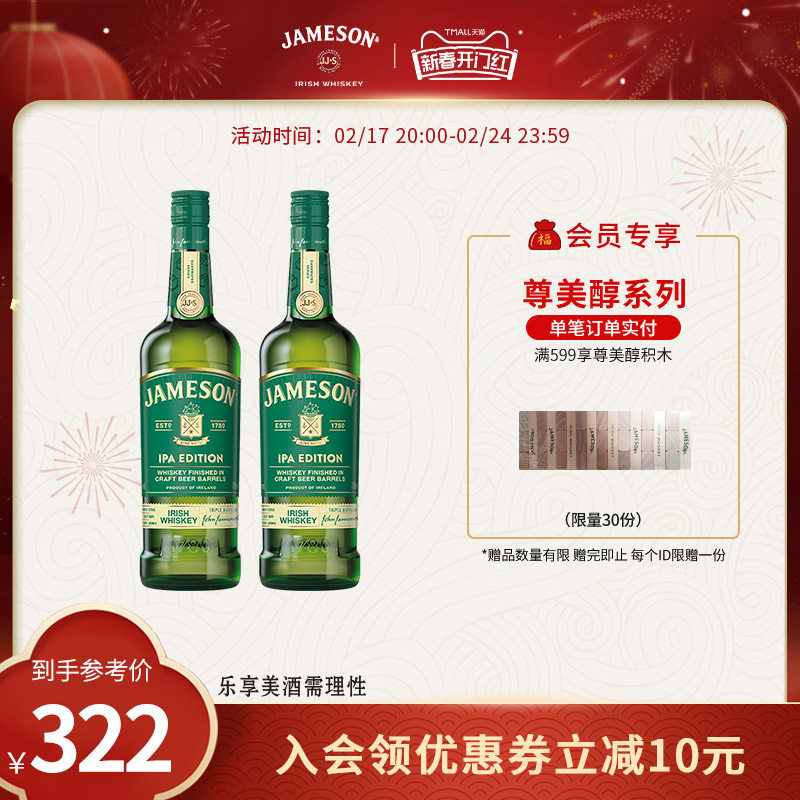 Jameson尊美醇IPA精酿啤酒桶爱尔兰威士忌700ml洋酒烈酒旗舰店