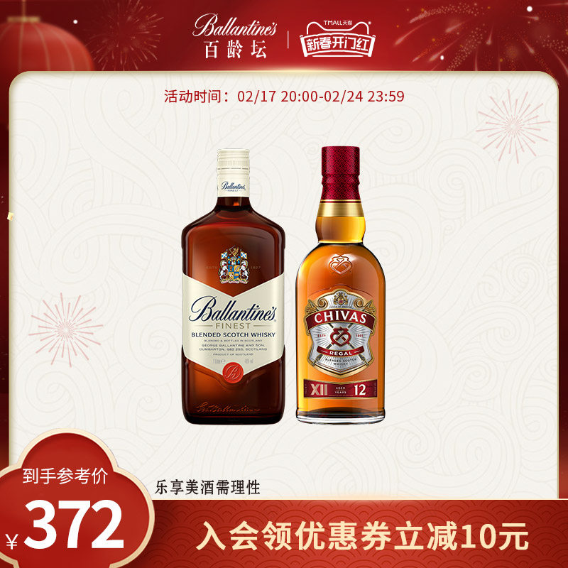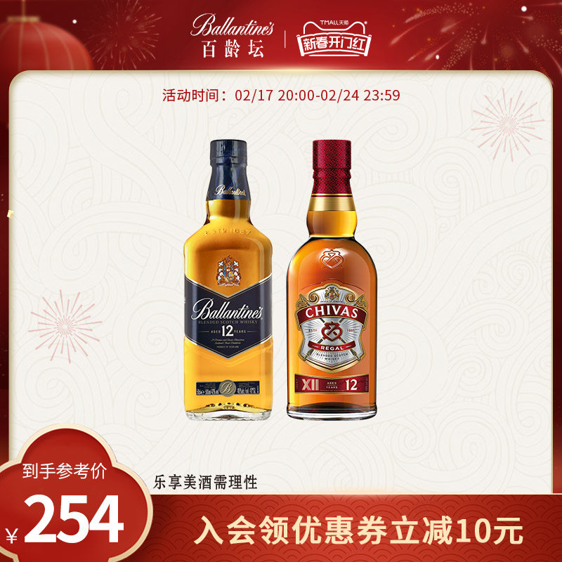 百龄坛特醇500ml*2苏格兰威士忌洋酒组合烈酒调酒基酒官方正品