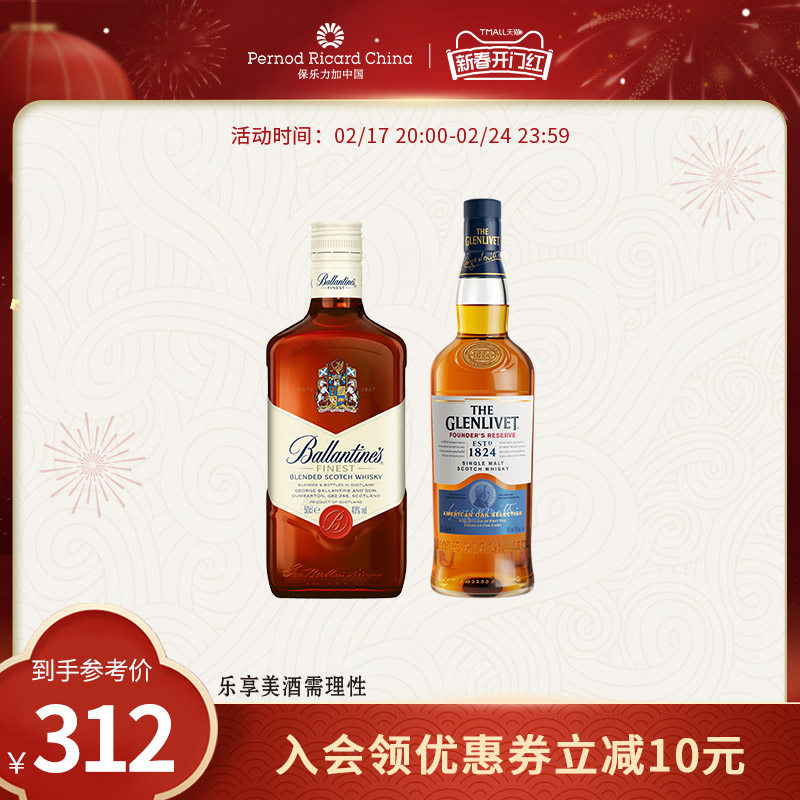 格兰威特创始人甄选单一麦芽700ml百龄坛特醇威士忌500ml洋酒组合