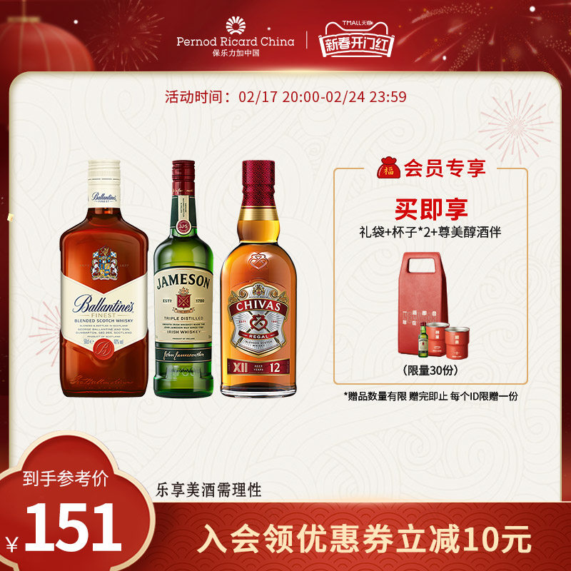 尊美醇百龄坛芝华士威士忌新年礼袋500*2进口洋酒烈酒组合套装