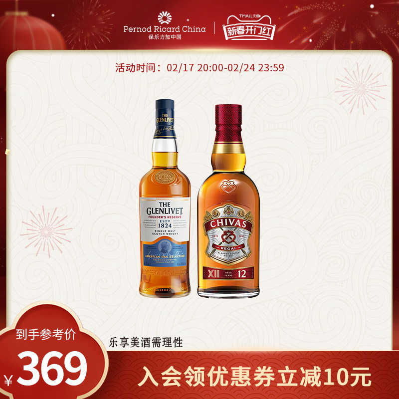 格兰威特创始人甄选单一麦芽700ml芝华士威士忌12年500ml洋酒组合
