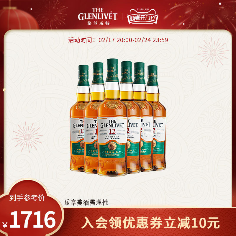 格兰威特12年陈酿单一麦芽威士忌700ml*6进口洋酒组合套装礼盒