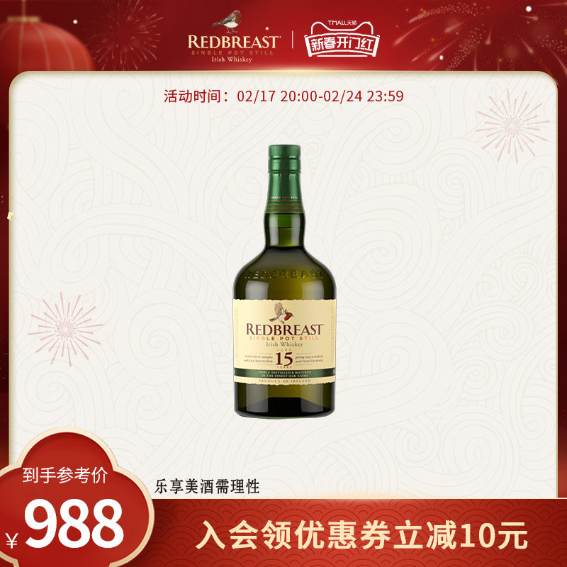 罗缤之舞15年熟成单一壶式蒸馏爱尔兰威士忌700ml进口洋酒烈酒
