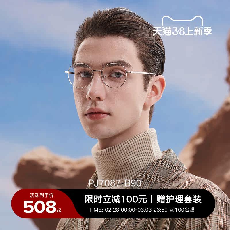 保圣眼镜2024新款防蓝光近视眼镜框男女潮流圆框金属光学镜PJ7087