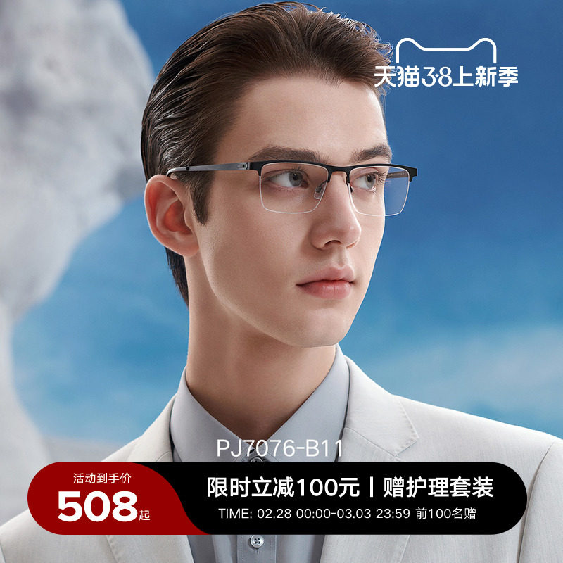 保圣光学架新款近视眼镜框架商务金属半框眼镜PJ7033