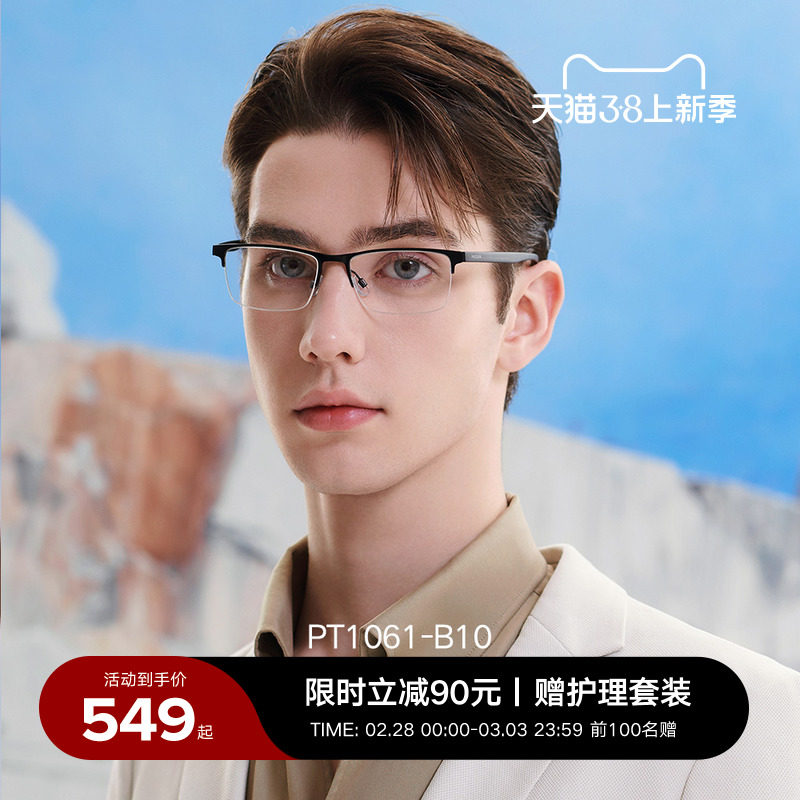 保圣2024新款近视眼镜经典商务半框眼镜男士舒适钛架眼镜框PT1061