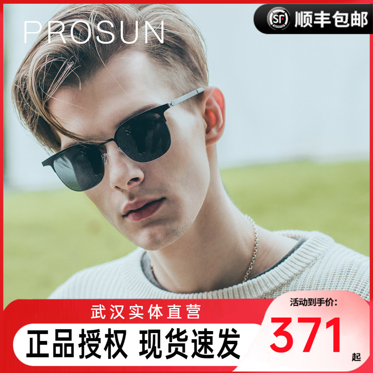 Prosun保圣方形框偏光墨镜男 复古圆脸男开车偏光太阳眼镜PS8006