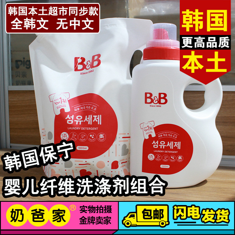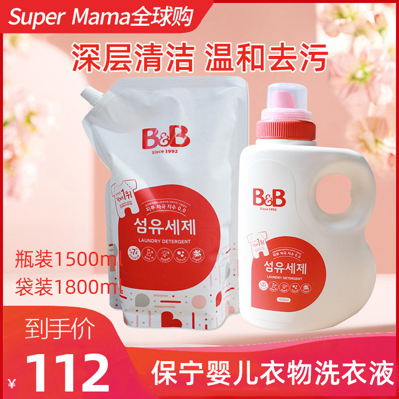 韩国进口B&B保宁婴儿洗衣液1500ml瓶装纤维去菌清洁洗涤剂桶装