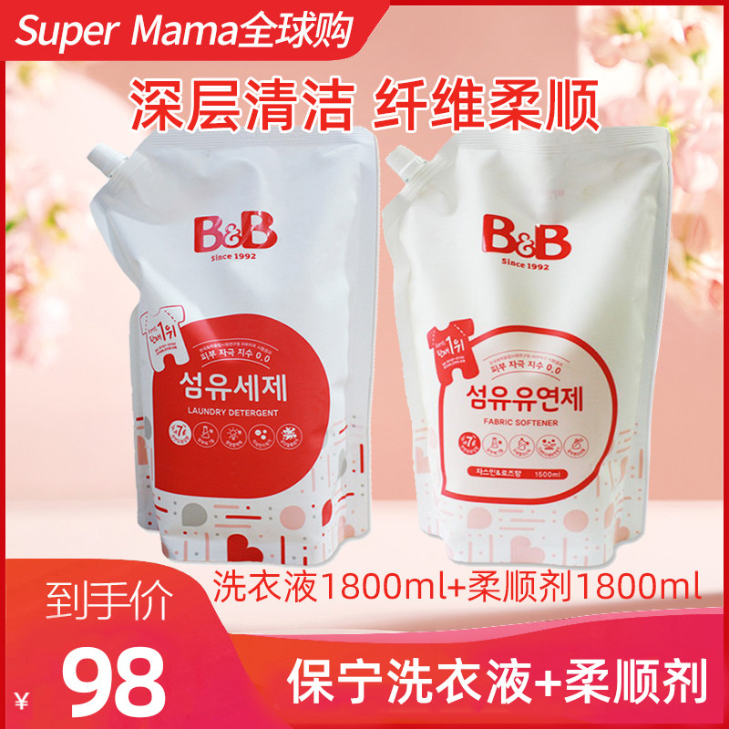 韩国B&B保宁新生婴儿衣物去污清洁除菌洗衣液1.5L+1.8L组合装
