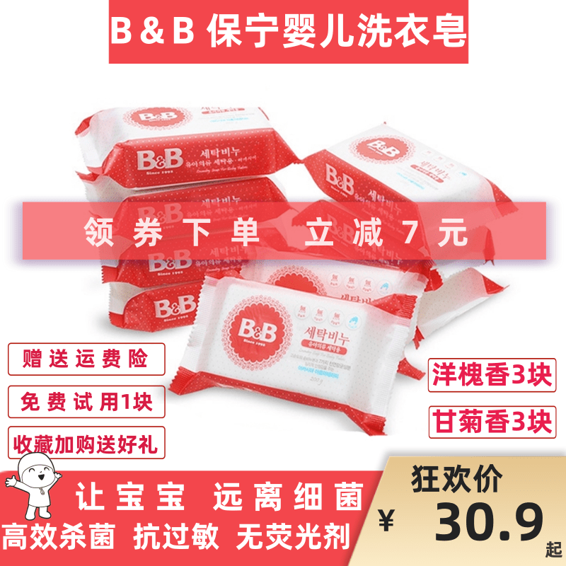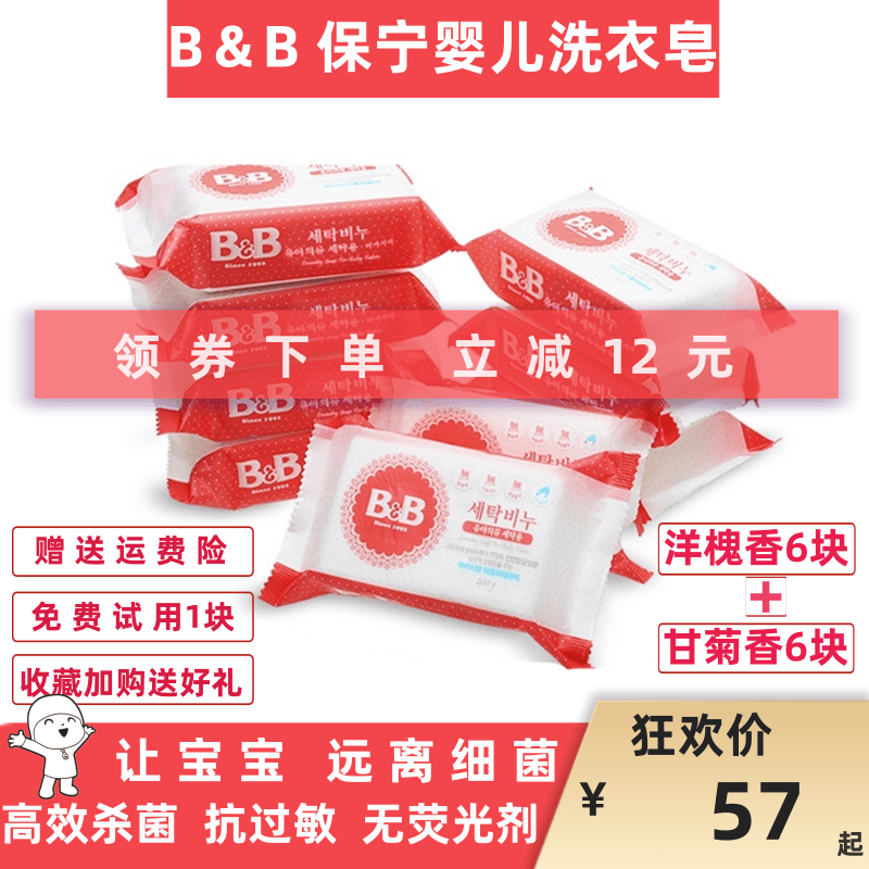 韩国保宁婴儿洗衣皂BB肥皂儿童香皂洋甘菊洋槐花12块装宝宝婴儿皂