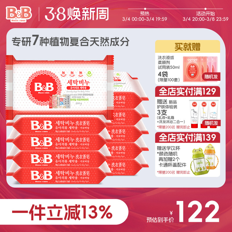 保宁B&B婴儿洗衣皂200g*8块男女宝宝儿童小孩专用洗衣服肥皂洋槐