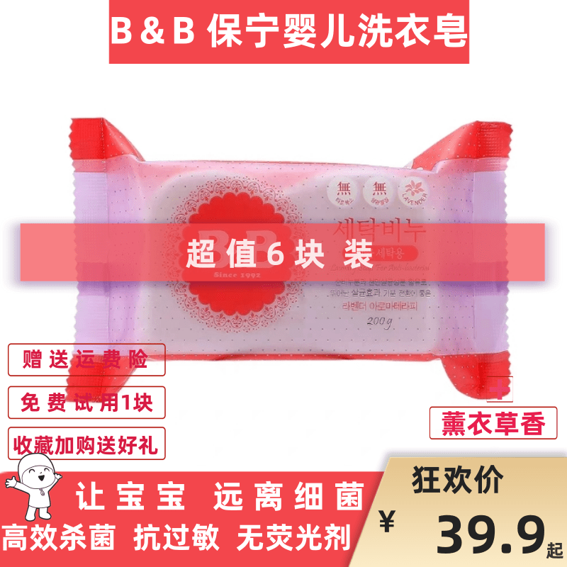 韩国保宁皂洗衣皂200g*6块装薰衣草香新生宝宝肥皂婴儿bb尿布皂