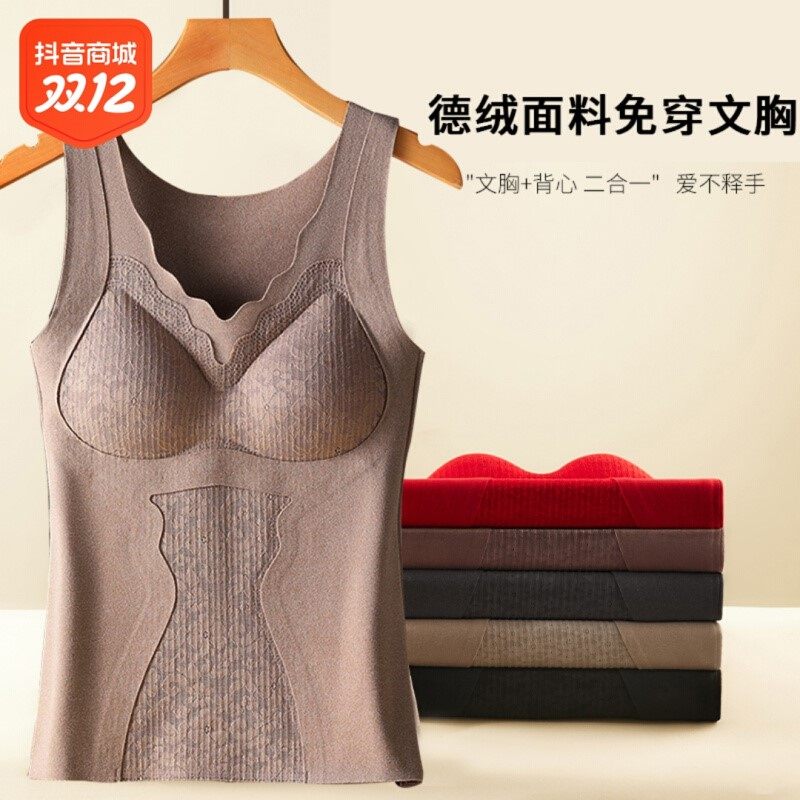 俞兆林官方旗舰店加绒加厚保暖背心内衣双面德绒免穿文胸收腹打底
