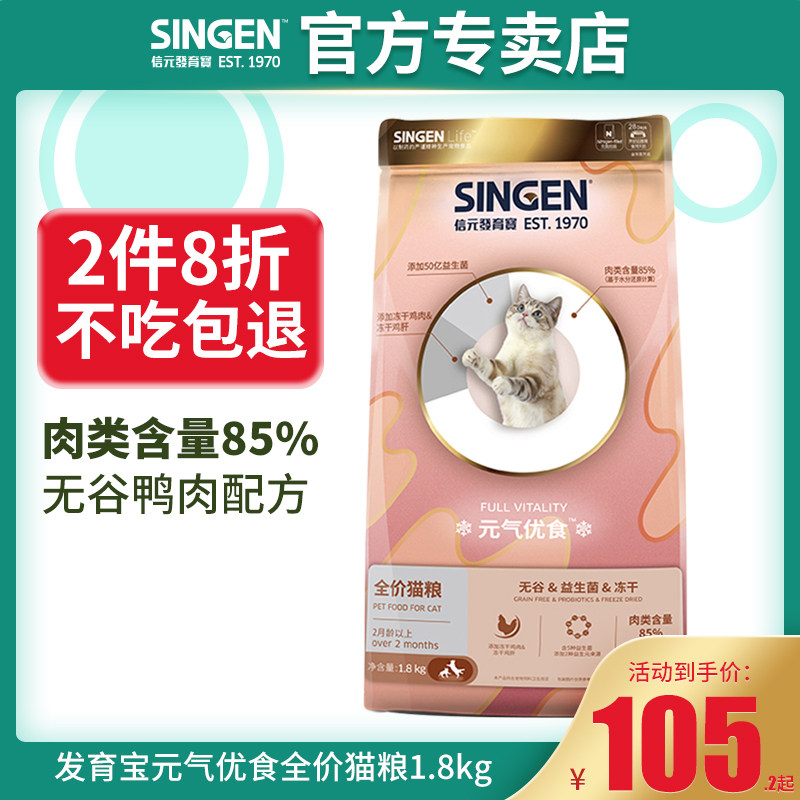 信元发育宝猫粮元气优食无谷配方冻干益生菌幼猫成猫主粮1.8kg