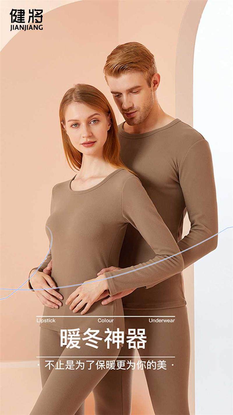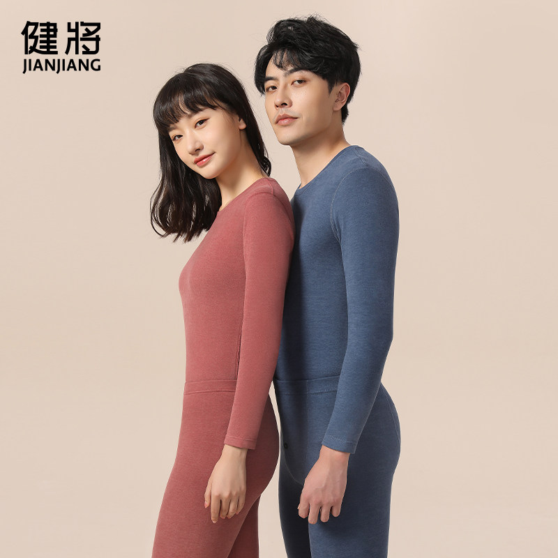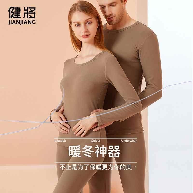 健将保暖内衣粘纤男士套装冬季加绒加厚女情侣秋衣秋裤自发热防寒