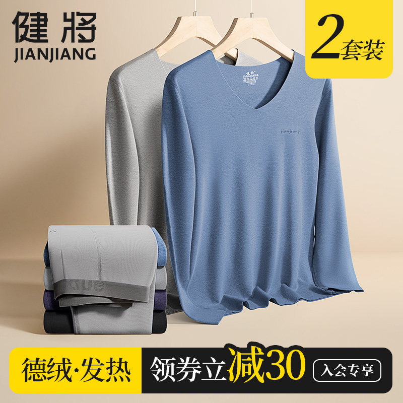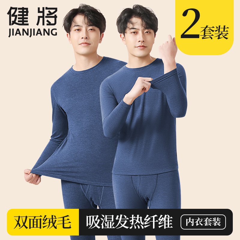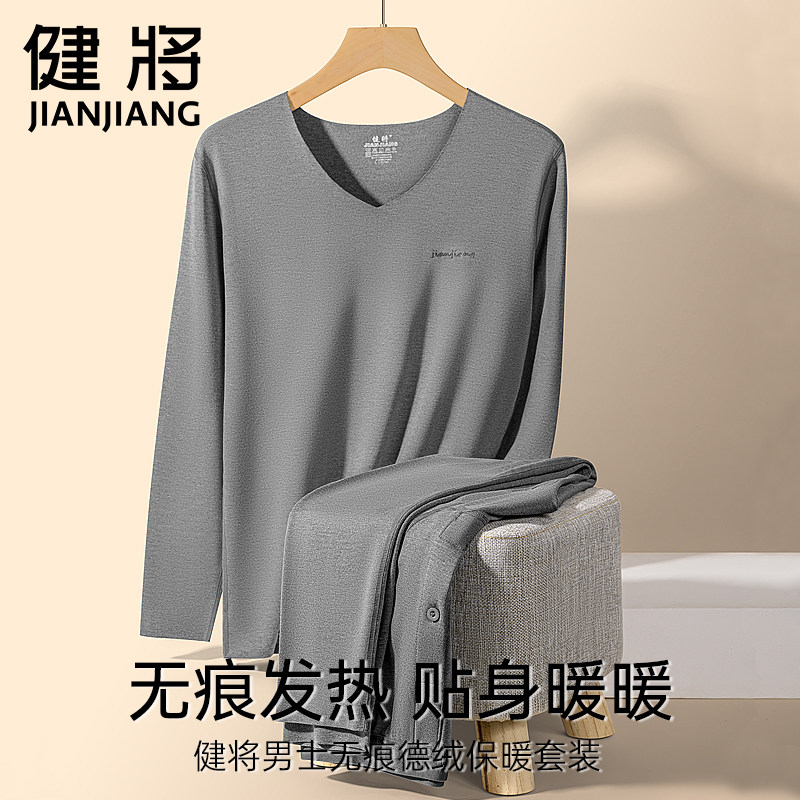 健将男士保暖内衣套装男德绒无痕发热打底秋衣秋裤秋冬季恒温内穿