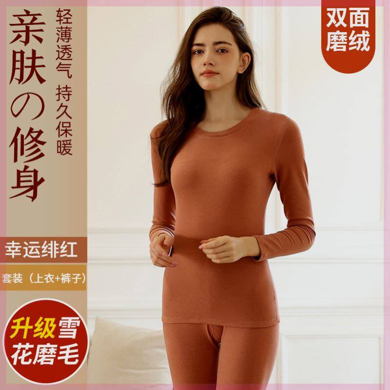 健将女士德绒保暖内衣套装女圆领秋衣秋裤女士保暖套装加绒保暖衣
