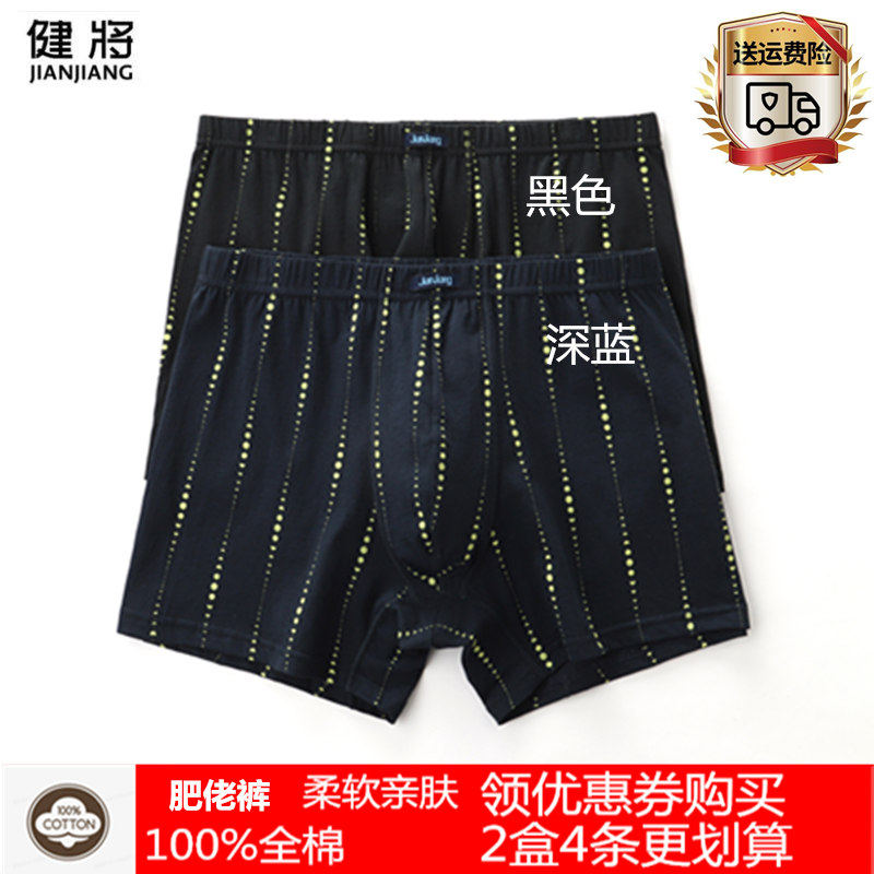 健将男士内裤全棉纯棉加肥加大肥佬裤青年中腰宽松中老年男平角裤