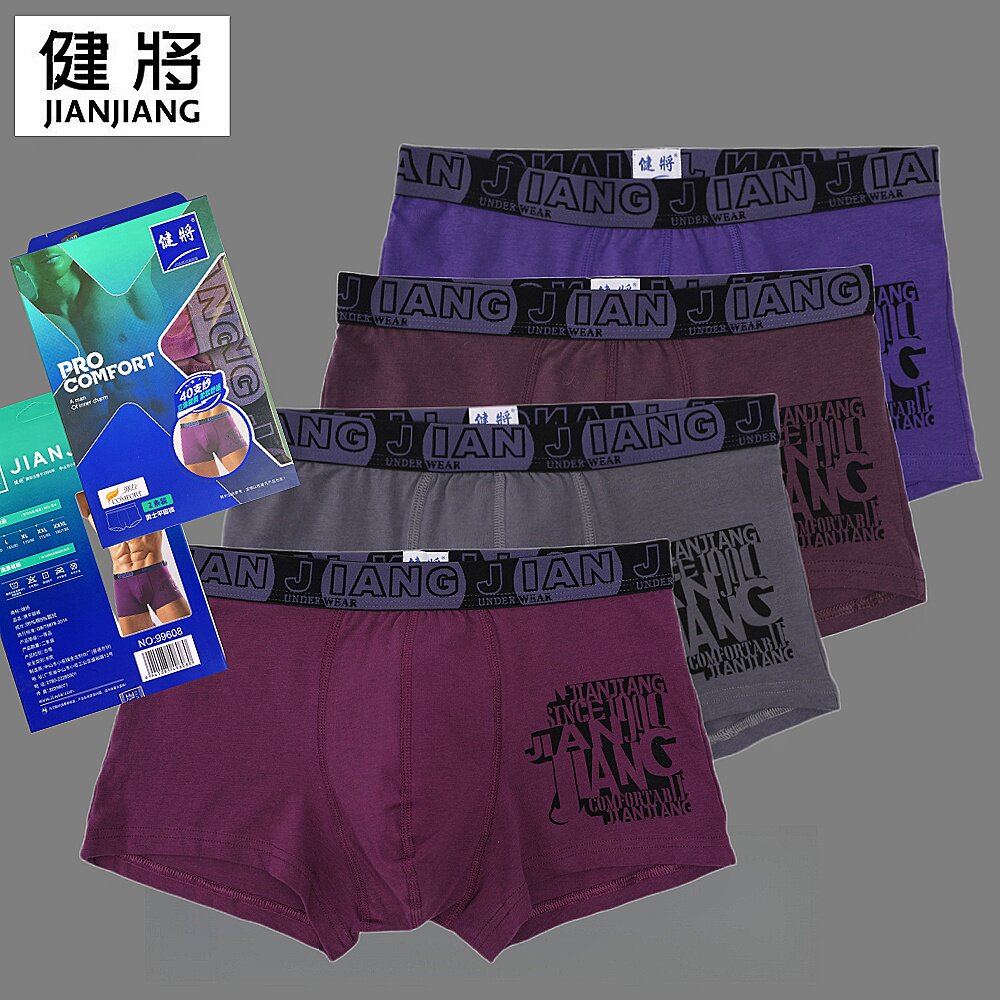 健将男士内裤莫代尔冰丝四角男生款纯棉大码抗菌透气运动平角短裤