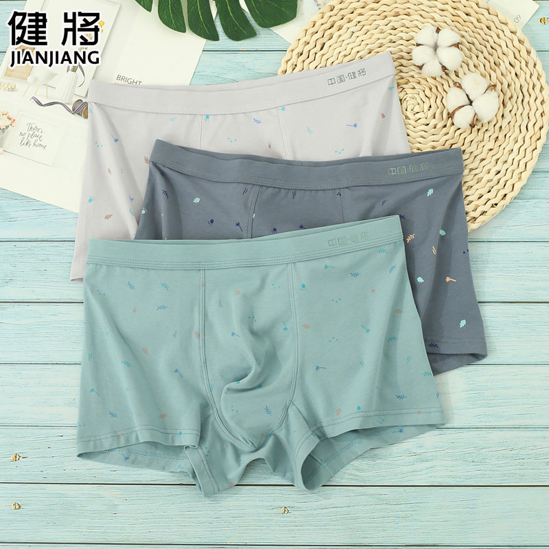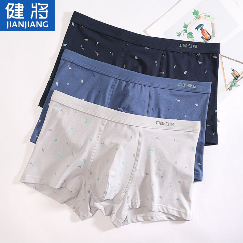 健将男士内裤宽松大码薄纯棉性感印花四角裤青年中腰平角裤礼盒装