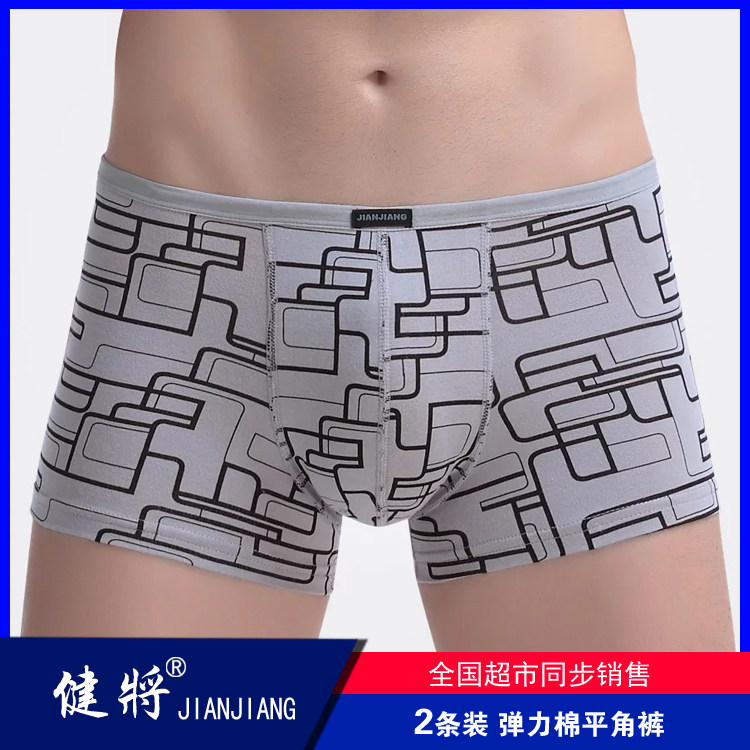 二条健将男士内裤厚莱卡棉高弹力印花透气舒适中腰平脚四角短裤头
