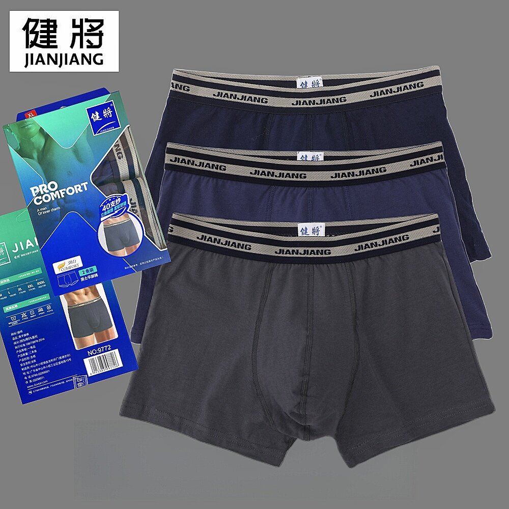 正品健将100%全棉平角中腰纯色内裤爸爸纯棉短裤棉质裤头男单色裤